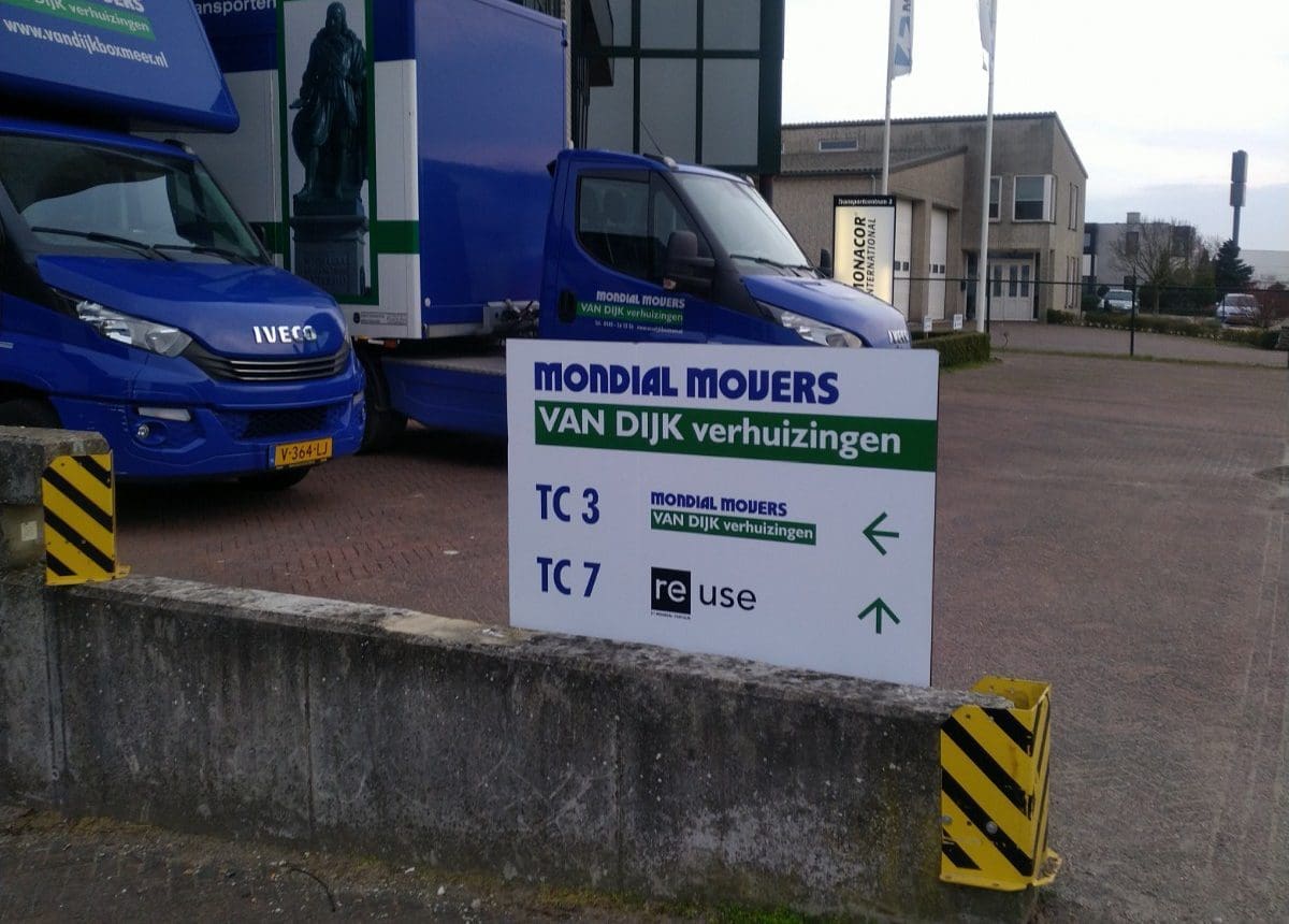 “We zijn de afgelopen jaren flink gegroeid doordat we steeds we meer facilitaire diensten aanbieden aan onze klanten op het gebied van circulair ondernemen. Om de groei aan te kunnen hebben we extra ruimte nodig. Inmiddels hebben we al een tijdje de derde locatie op het Transportcentrum in Beugen in gebruik genomen. Om klanten en leveranciers wegwijs te maken op onze locatie was er behoefte aan bewegwijzering. En natuurlijk beginnen we dan met circulair denken”, vertelt eigenaar Roel van Dijk.